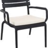 Paris Lounge Armchair is stackable and produced with a single injection of polypropylene reinforced with glass fiber, for indoor and outdoor use and with non-slip feet. The Paris collection also includes a footrest table, designed to match the styling silhouette of the chair to perfection.